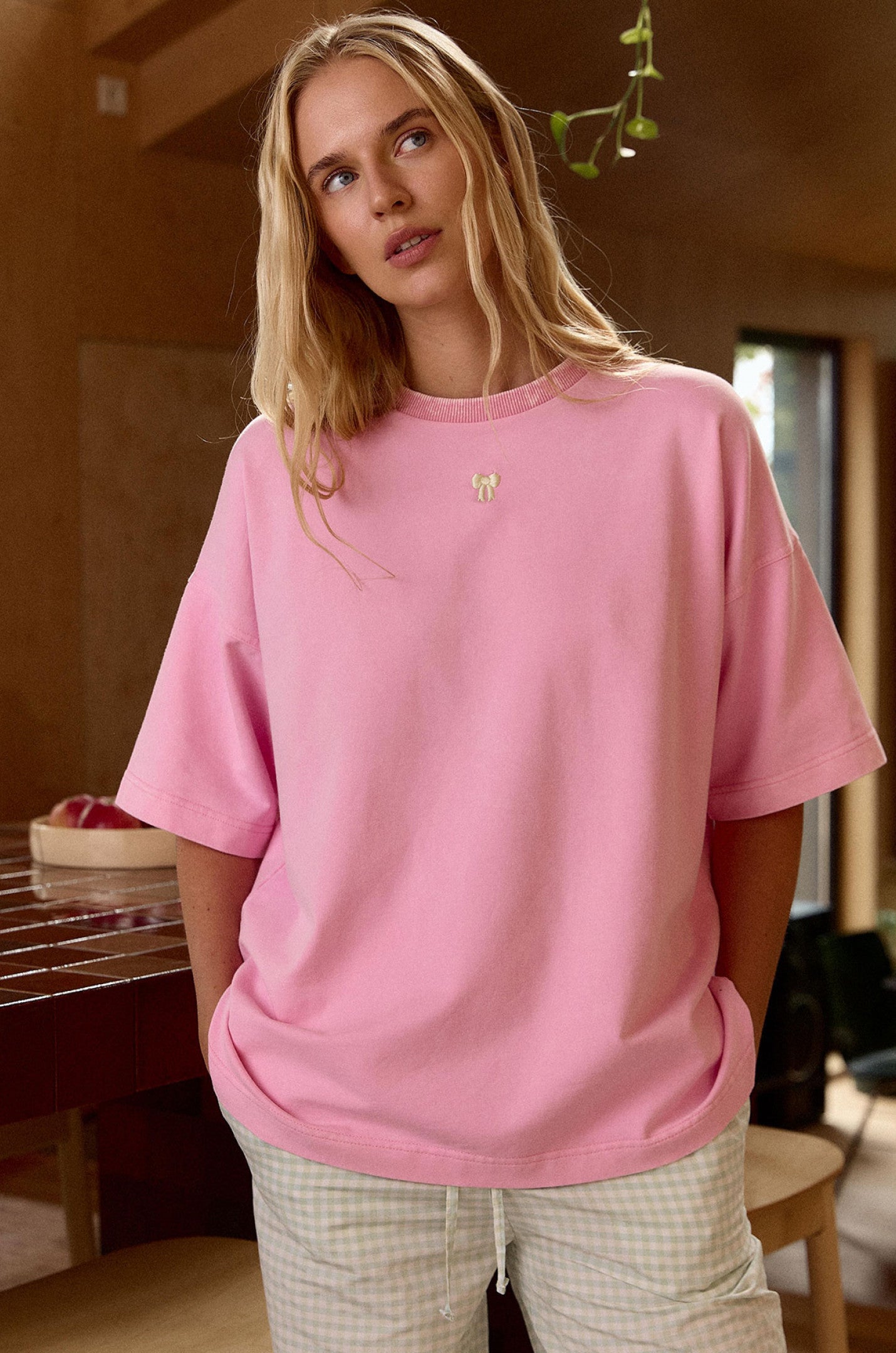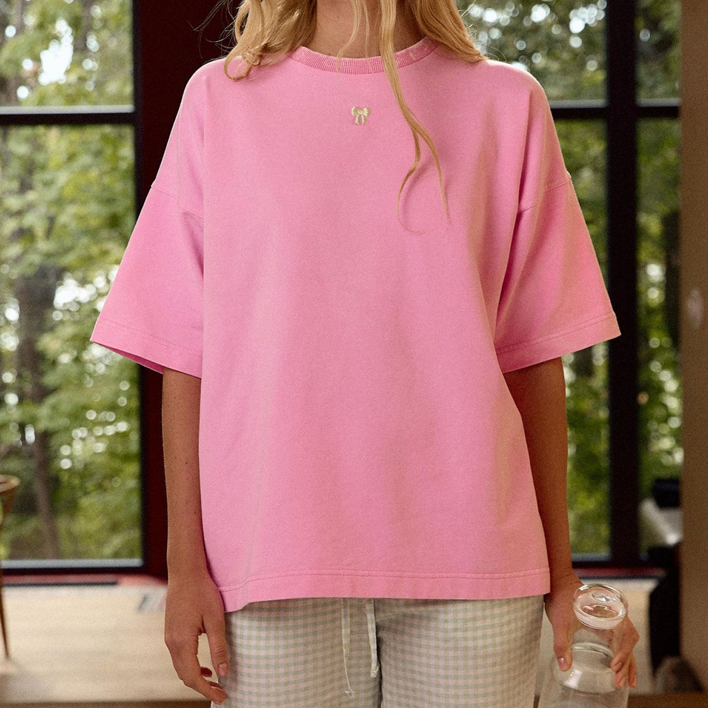 Футболка виварена, з вишивкою лимонного бантика. Склад: 100% бавовна. Колір: рожевий