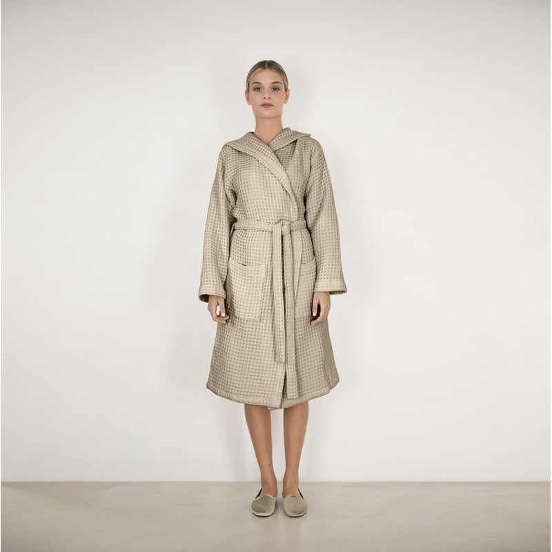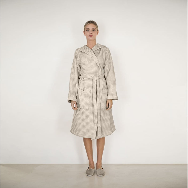 100% бавовна зі Stone Washed обробкою. Халат із капюшоном, виконаний із трьохшарової тканини.