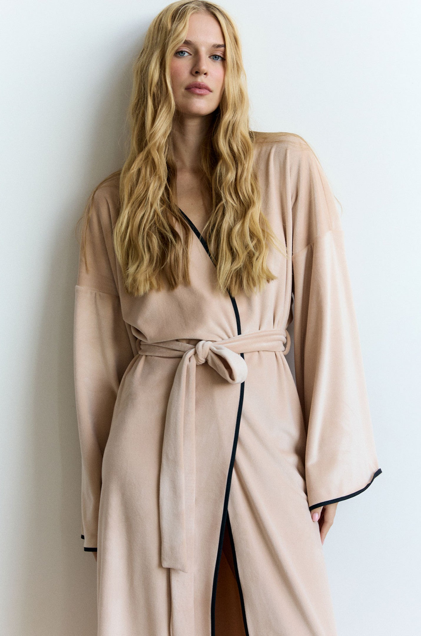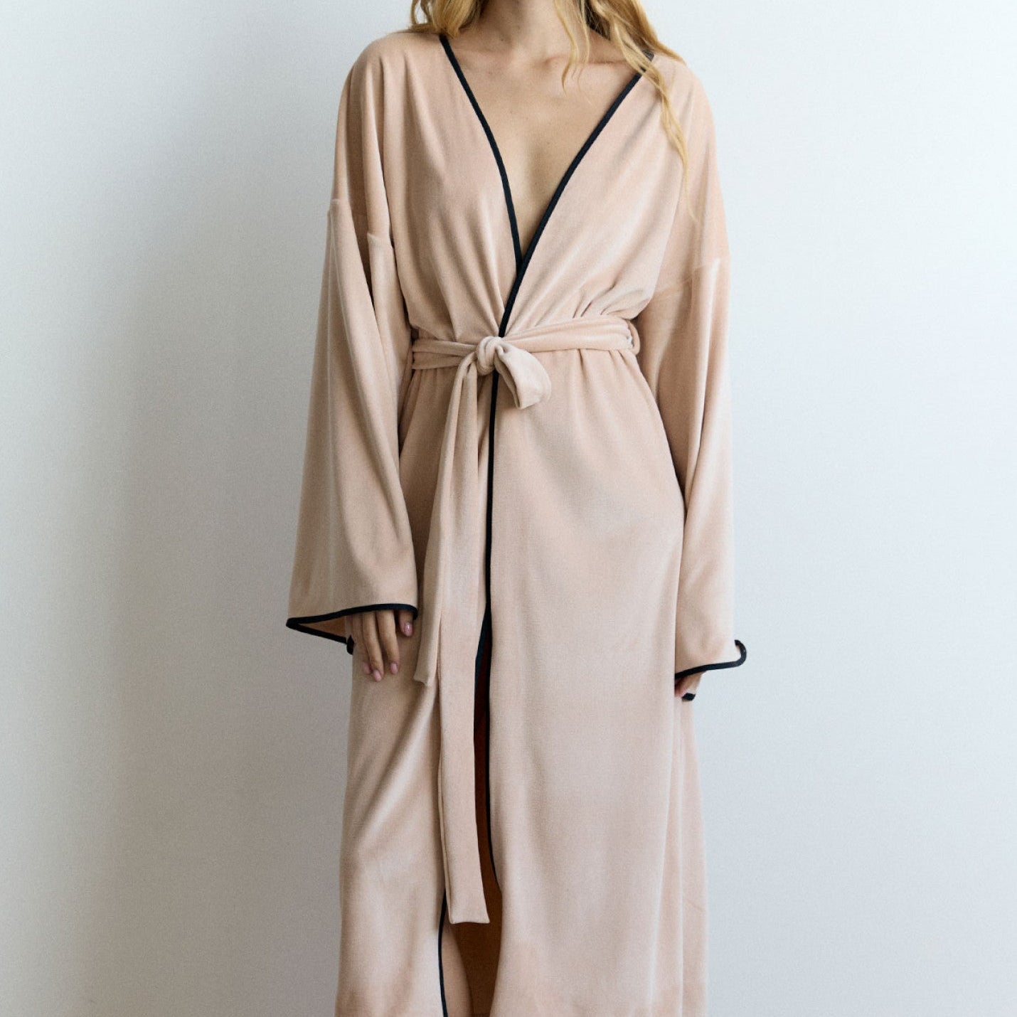 Теплий довгий халат з утепленого велюру. Халат на запах, з поясом в комплекті.