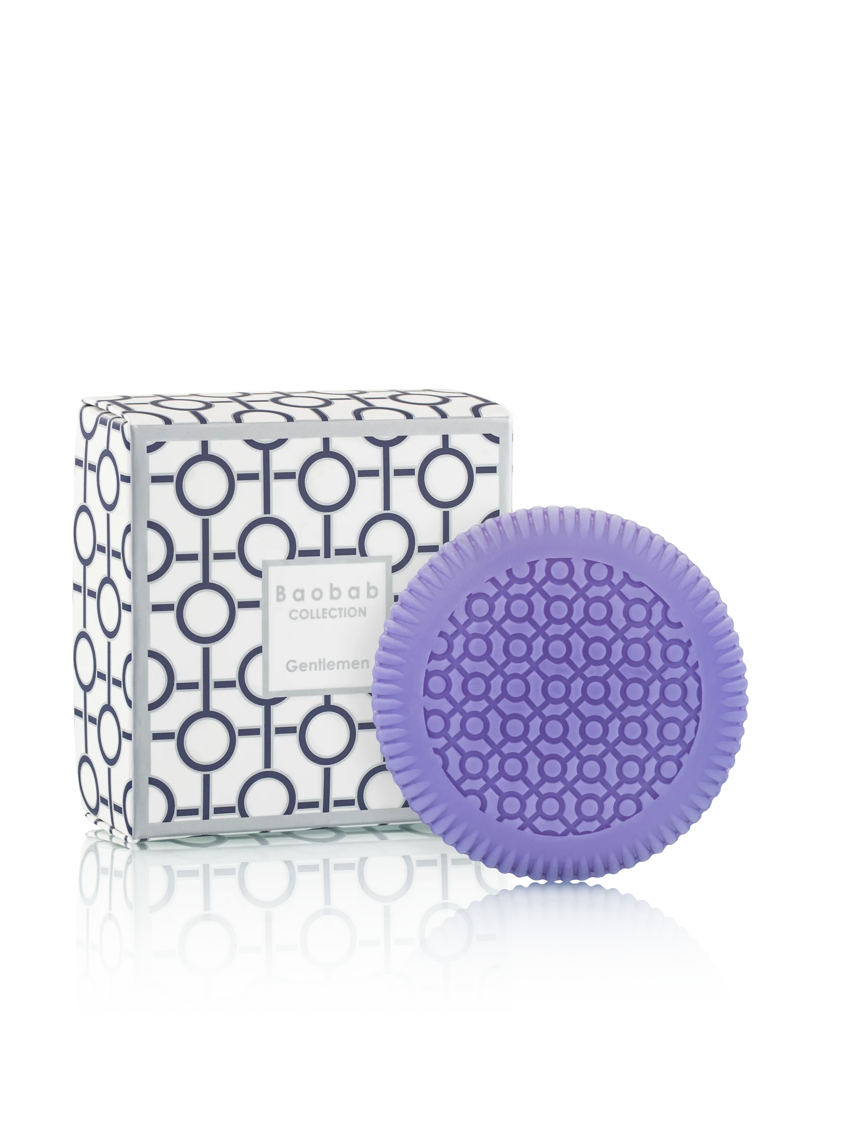 Темно-синє мило Gentlemen з вишуканим тисненням шовкографічного мотиву поєднує стильний дизайн і спокусливий аромат. Ноти рому та шафрану в поєднанні з базовим акцентом сирої смоли лабдануму створюють глибокий, мужній характер. Завдяки надм’якій формулі збагаченій олією, мило дбайливо очищає та відновлює ліпідний баланс шкіри, забезпечуючи комфорт і догляд.